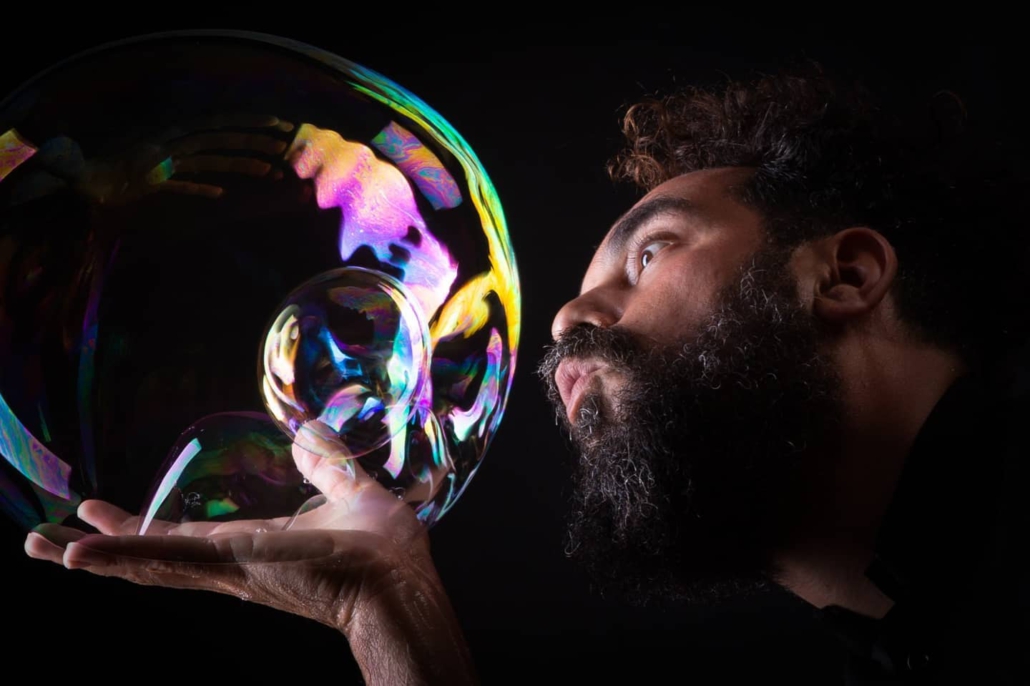 ולסיום המופע האדיר – הכנסת ילד מן הקהל לתוך בועה.
